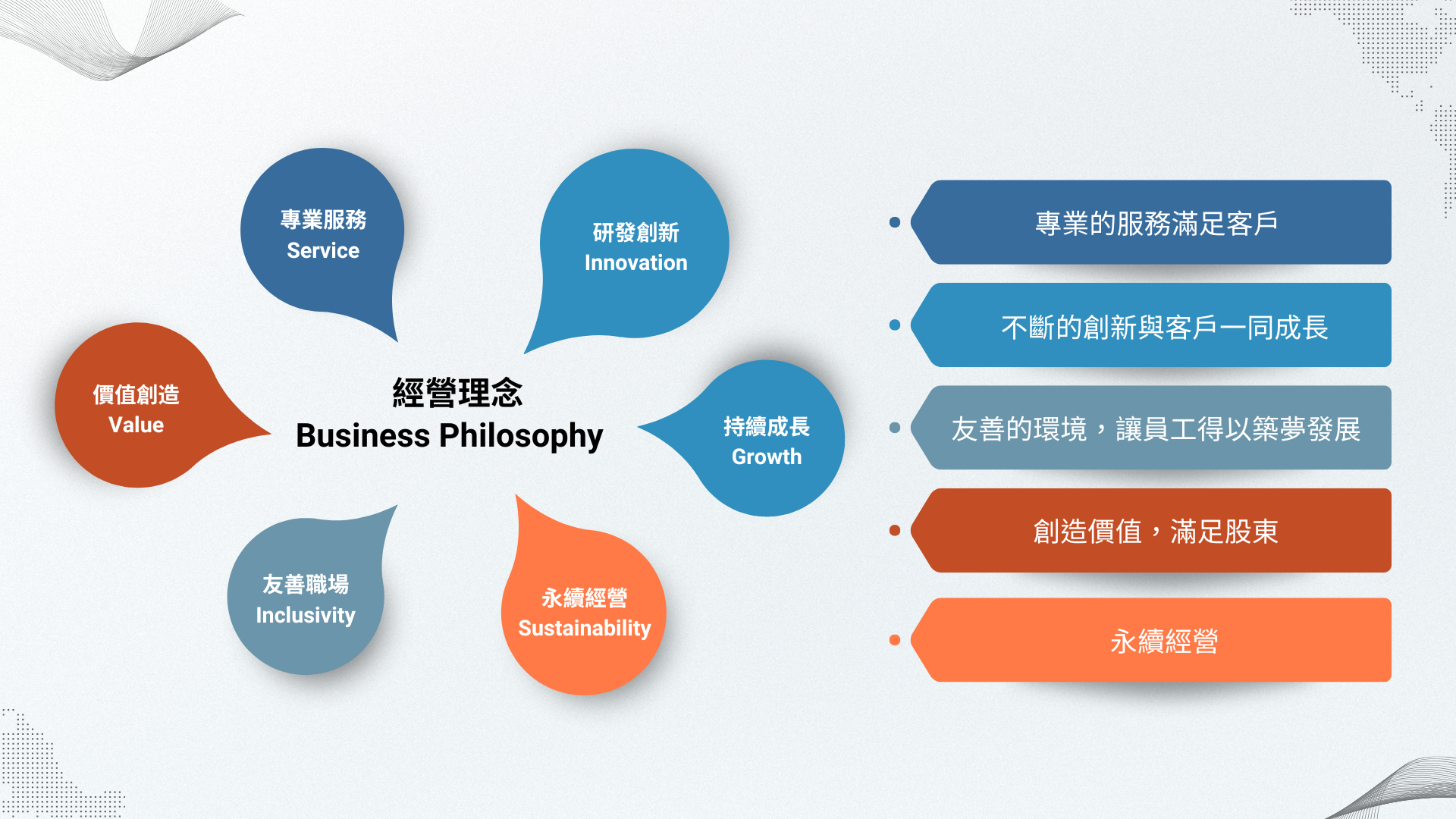 天燿秉持著專業服務、研發創新、持續成長、價值創造,以及打造友善職場與實踐永續經營的核心精神,推動企業穩健發展。